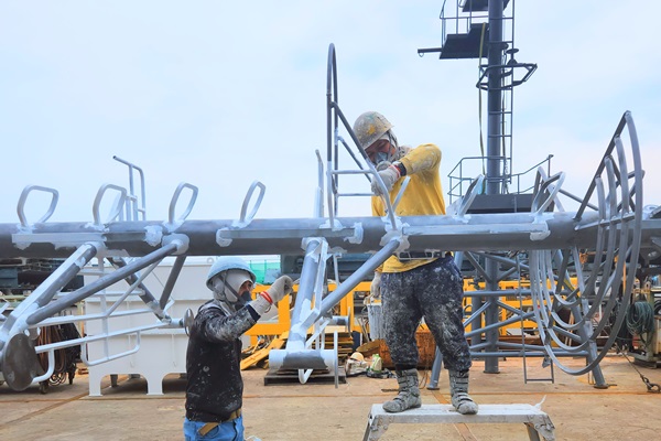 高所での作業や力仕事も伴いますが、安全対策を徹底しながら、仲間と力を合わせて、この街から世界を旅する船や、この街の鋼構造物の「肌」を人間の手でキレイにしていく。